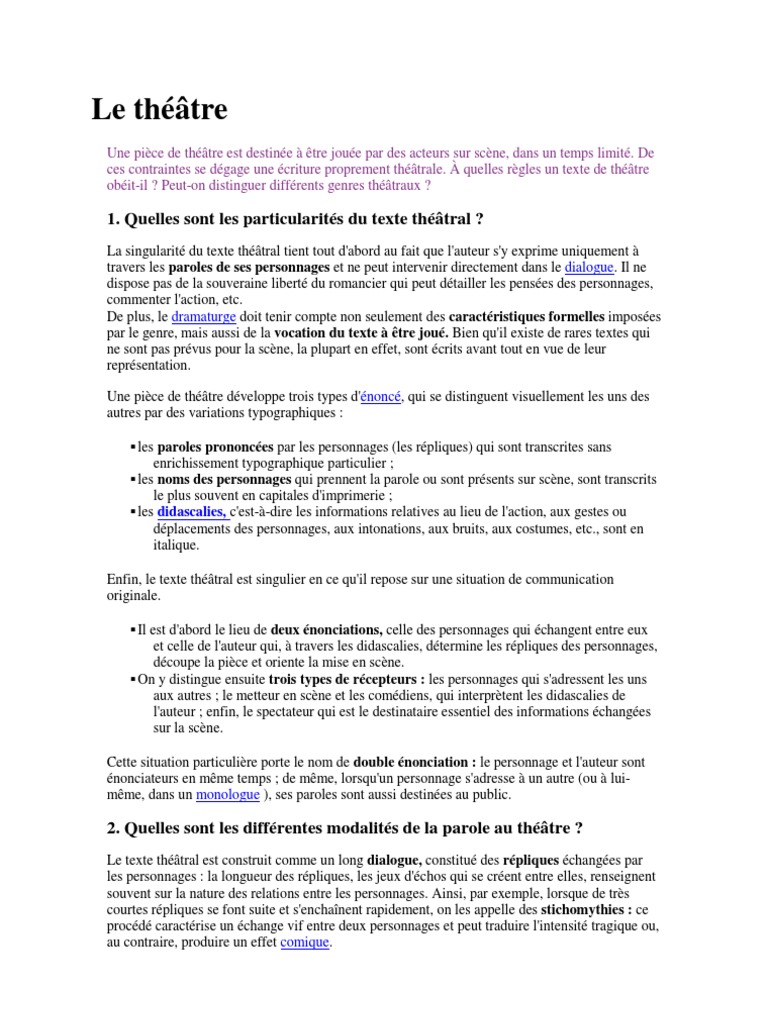 Il y a lieu de faire. Peu importe le choix limportant est de conserver luniformité typographique dans un texte ou une série de textes. Pour analyser le texte répliques et didascalies de manière complète observer.