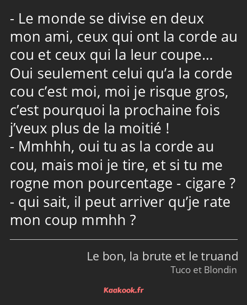 Citation Le Bon La Brute Et Le Truand Monde Tu Vois Le Monde Se Divise En